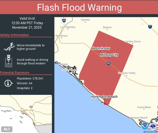 Ivy Le | CMG Financial Inc WHAT YOU CAN DO Flash flood warning in Huntington Beach CA, Westminster CA and surrounding areas.The National Weather Service issued a flash flood warning last night. Although it was a light to moderate rainfall with mild thunderstorms, it is recommended ... Posted 11/21/2025 2:00:00 PM In My Space FLASH FLOOD WARNING Votes ( 3 / 0 ) Replies (1) Los Angeles, CA View Reply Share